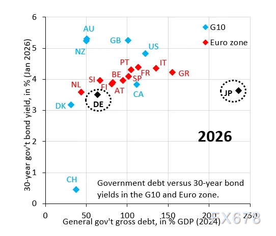 日本的核心问题在于,日本央行人为压制了长期国债收益率。只要这种状况持续,长期收益率就无法反映市场针对高额公共债务所要求的风险溢价。